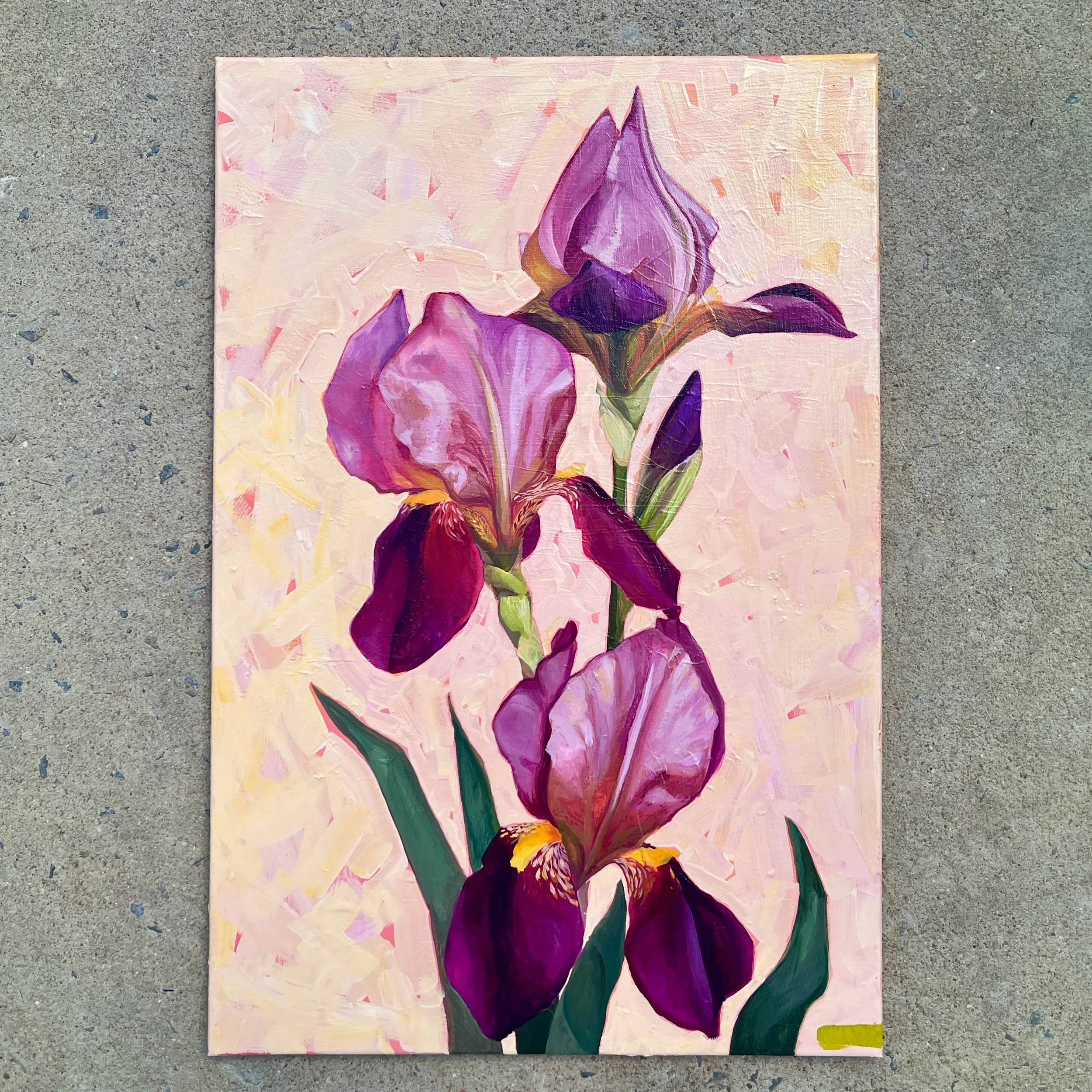 Shop › Three and a Half Iris Image 1 of 1 Three and a Half Iris $360.00 Acrylic and gouache on stretched canvas20x30”Wired for hanging Add To Cart Added! Acrylic and gouache on stretched canvas20x30”Wired for hanging